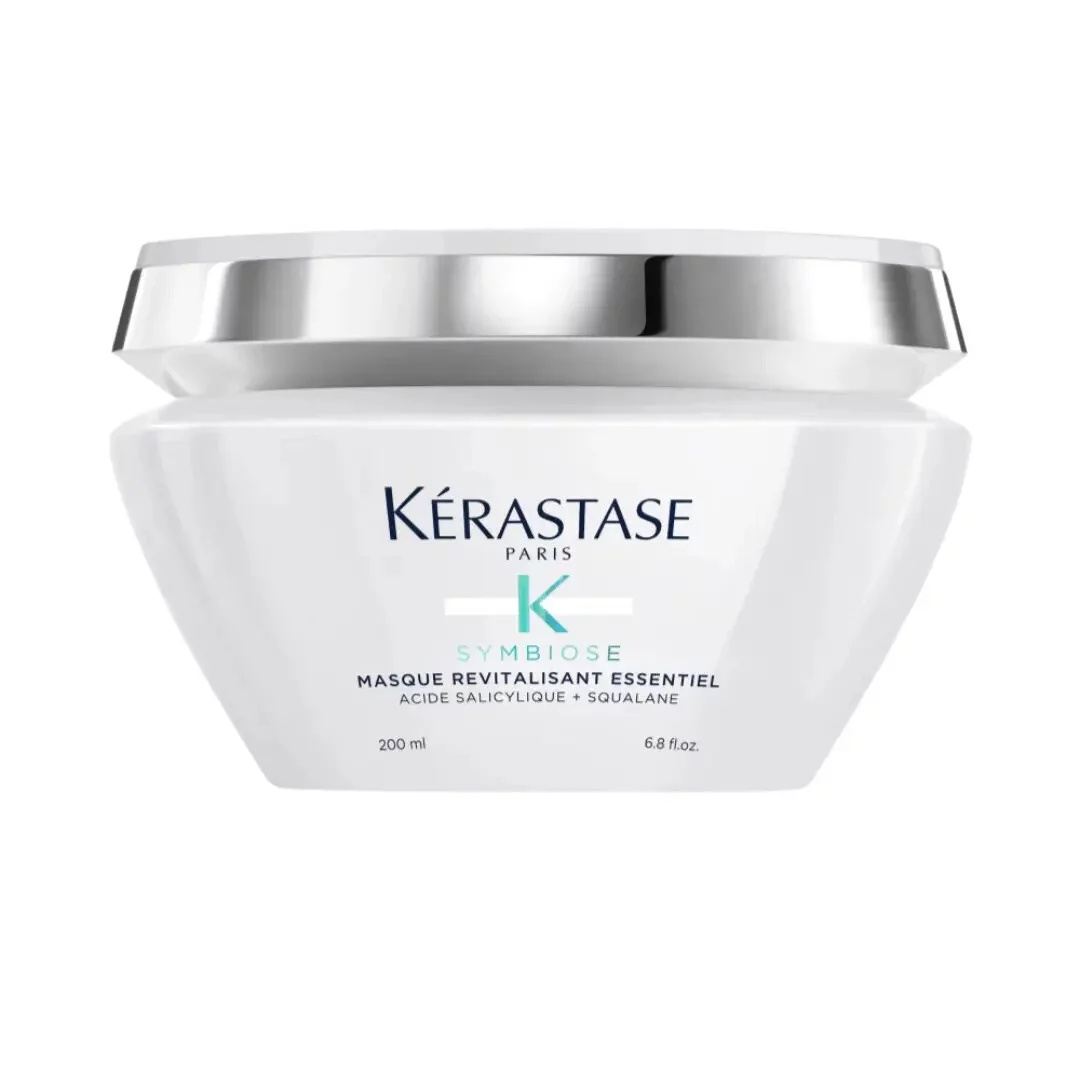 Regenerační, revitalizační maska Kérastase Symbiose Masque Revitalisant Essentiel pro poškozené vlasy a pokožku hlavy se sklonem k tvorbě lupů. Její hutná krémová textura navrátí vlasům hydrataci, intenzivně je vyživí, a přitom pomůže odstranit z jejich délek zbytky nečistot. Navíc zmírní nepříjemné pocity na pokožce hlavy a podpoří zachování funkce kožní bariéry.