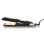 Profesionální digitální žehlička na vlasy s inovativní technologií Flex-Q a povrchovou úpravou nano- titan destiček. Novými funkcemi. Pohyblivé desky pro snadné vytvoření perfektních vln a objemu vašich vlasů nebo na dokonalé uhlazení vlasů. Na tepelné desky je použit nano-titanový povrch který zaručuje maximální styling a antistatický efekt. Nová digitální technologie Digital-HC pro lepší kontrolu a nastavení teploty. V případě, že zařízení není užíváno po dobu 30 minut, žehlička se sama automaticky vypne a vstoupí do režimu spánku.
