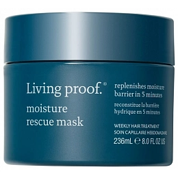 Living Proof Moisture Rescue Mask je hloubkově hydratační maska, která obnovuje vlhkostní bariéru vlasů a pomáhá uzamykat hydrataci uvnitř vlasového vlákna. Díky tomu zůstávají vlasy hebké, hladké a snadno upravitelné i několik mytí po aplikaci.