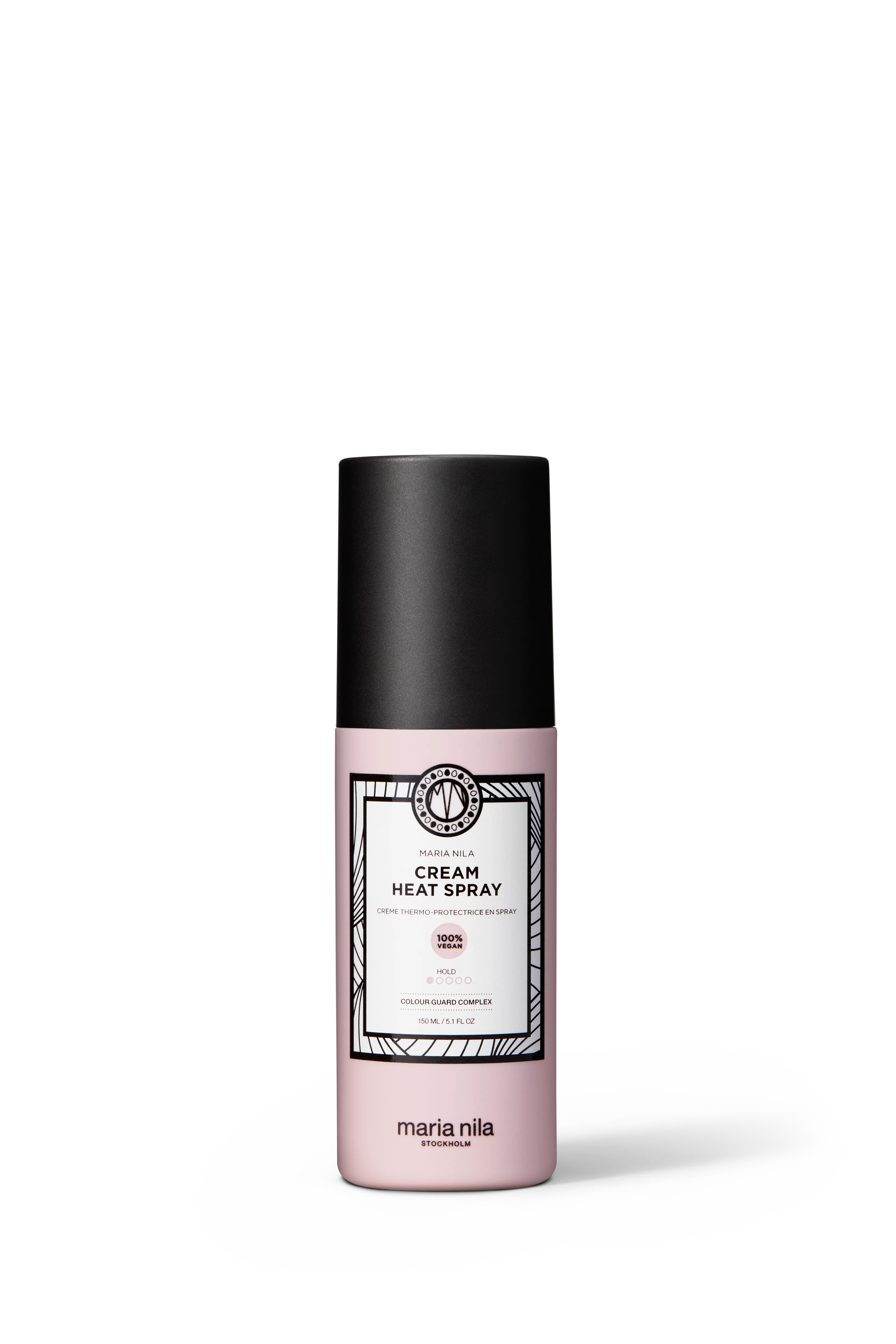MARIA NILA CREAM HEAT SPRAY je vyživující ochranný krém před teplem, který obnovuje poškozené vlasy a zabraňuje roztřepávání konečků. Obsažený Color Guard Complex chrání vlasy před UV zářením a volnými radikály a zajišťuje delší životnost barvy vlasů.