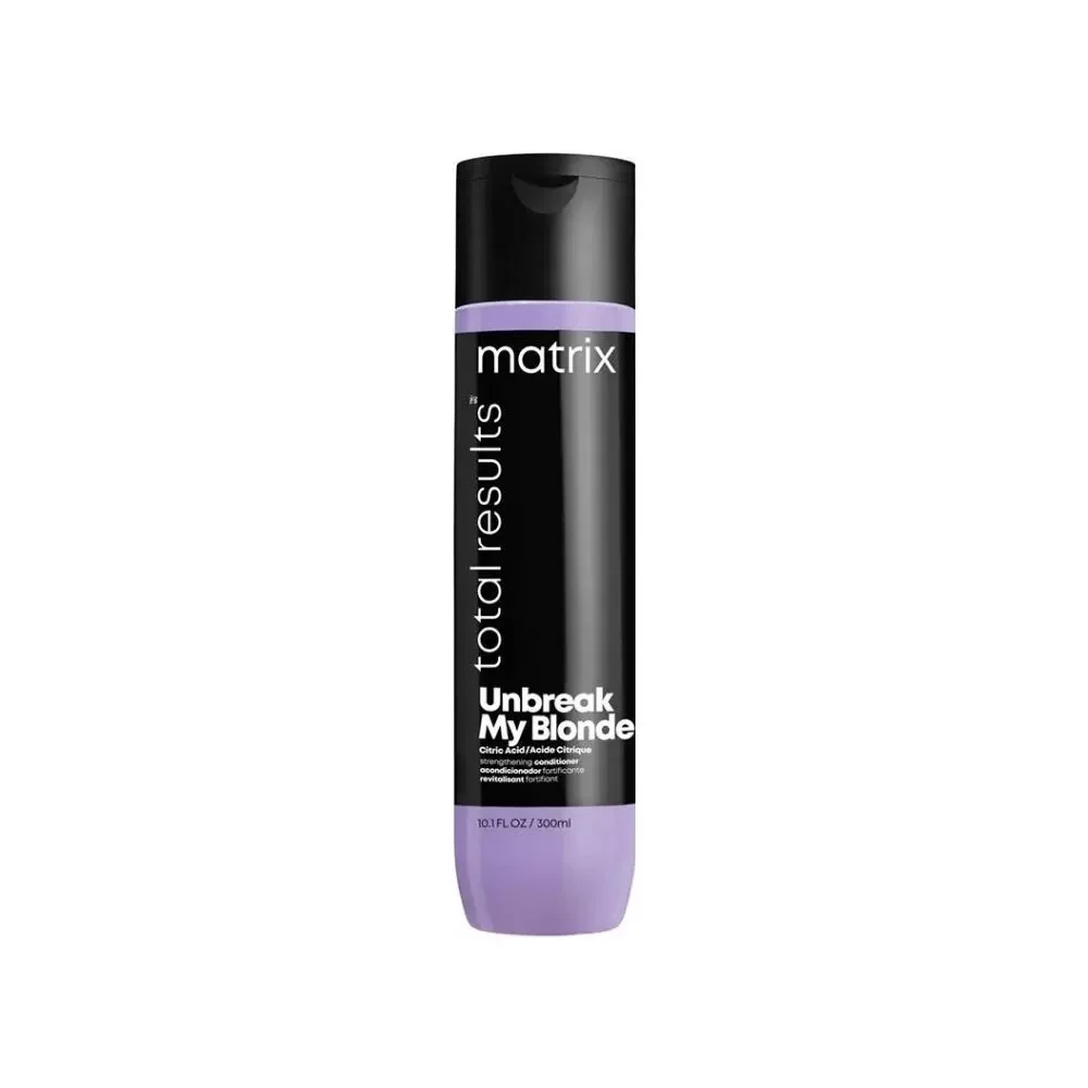 Kondicionér Matrix Total Results Unbreak My Blonde zanechává vlasy jemné a hydratované díky svému unikátnímu složení. Systém Unbreak My Blonde, obohacený o kyselinu citronovou, pomáhá posílit slabé vazby a zanechává vlasy až 3x silnější.