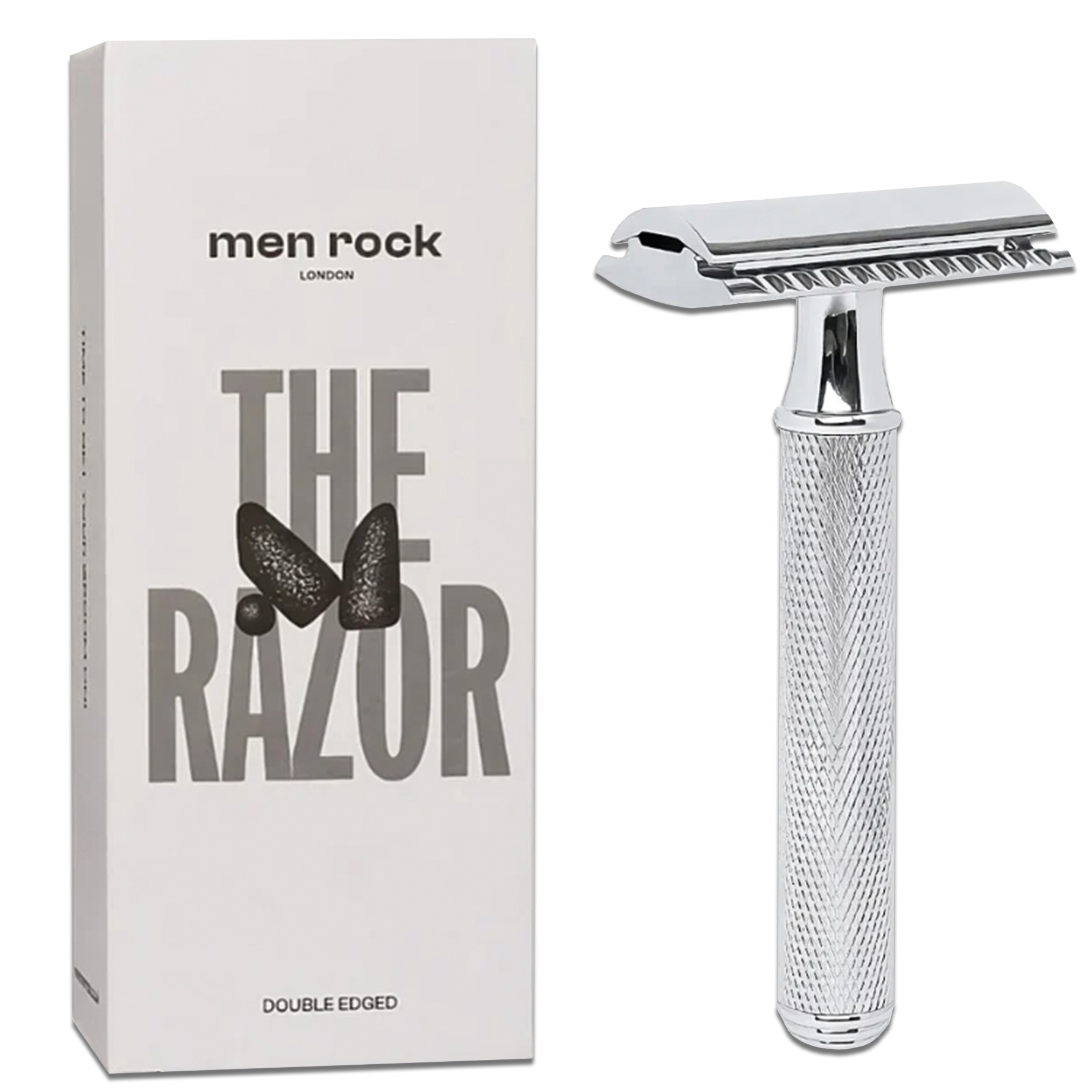 Men Rock Double Edged Razor je klasický holicí strojek na žiletky s dvojitým ostřím, který nabízí tradiční a precizní způsob holení. Díky kvalitnímu zpracování z odolného kovu zajišťuje dlouhou životnost, perfektní rovnováhu a maximální kontrolu při holení. Je ideální volbou pro muže, kteří si chtějí dopřát hladké a komfortní oholení bez podráždění.