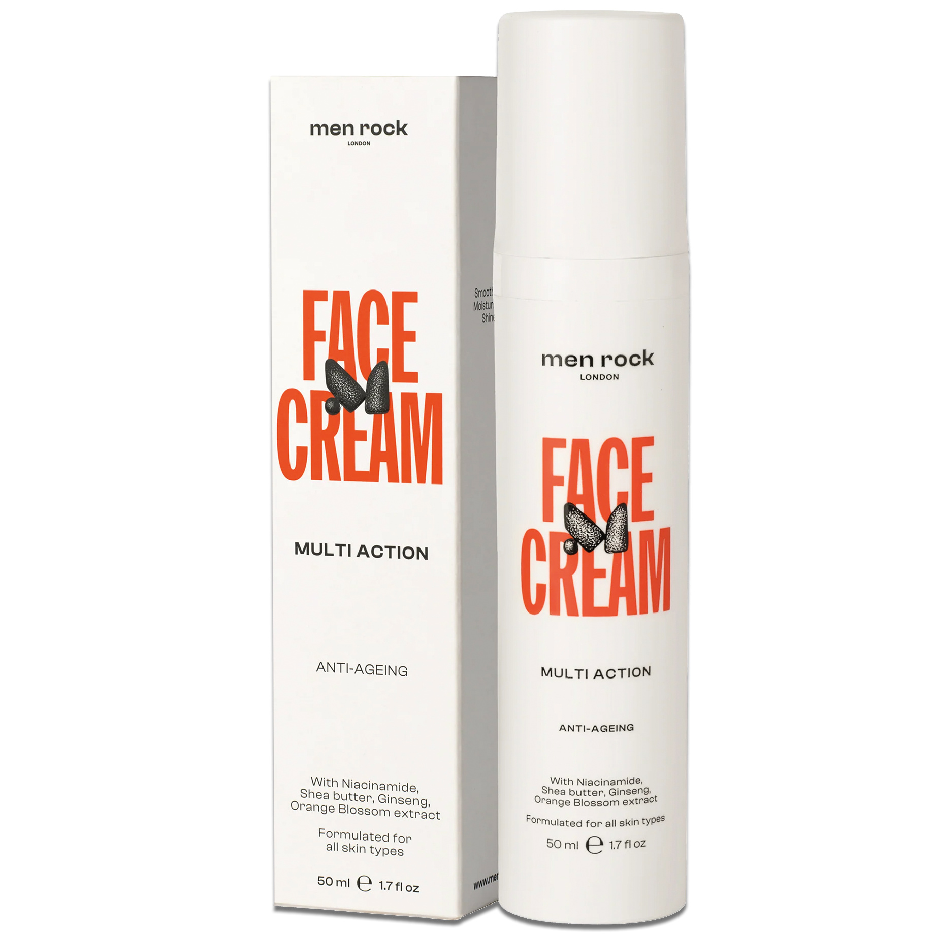 Men Rock Face Cream je lehký hydratační krém pro muže, který poskytuje pleti každodenní péči, hydrataci a ochranu. Jeho složení pomáhá zklidnit pokožku po holení, redukuje podráždění a podporuje její přirozenou regeneraci. Díky jemné textuře se rychle vstřebává, nezanechává mastný film a zanechává pleť svěží, hladkou a pružnou.
