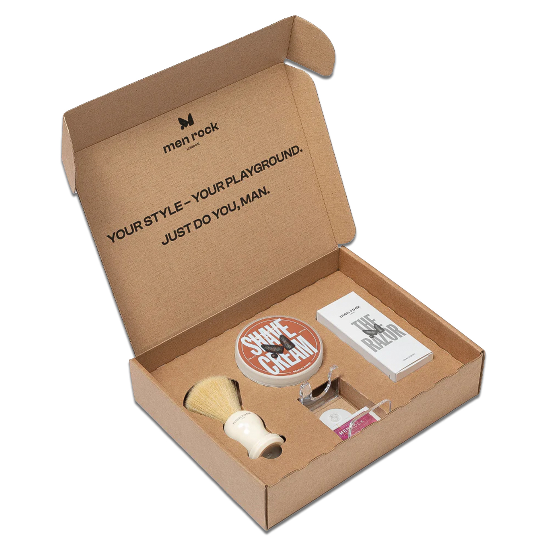 Men Rock The Life Shaver Sandalwood je luxusní sada pro tradiční mokré holení s elegantní dřevitou vůní santalového dřeva. Nabízí dokonalou kombinaci stylu, kvality a komfortu. Hlavní součástí je precizně zpracovaný holicí strojek, který zajistí hladké a čisté oholení bez podráždění. V balení nechybí krém na holení se smyslnou vůní santalového dřeva, štětka na holení pro vytvoření bohaté pěny a stojan na odkapávání, který udržuje příslušenství v perfektním stavu a připravené k dalšímu použití. Celá sada přináší jedinečný rituál holení s dotekem klasické elegance.