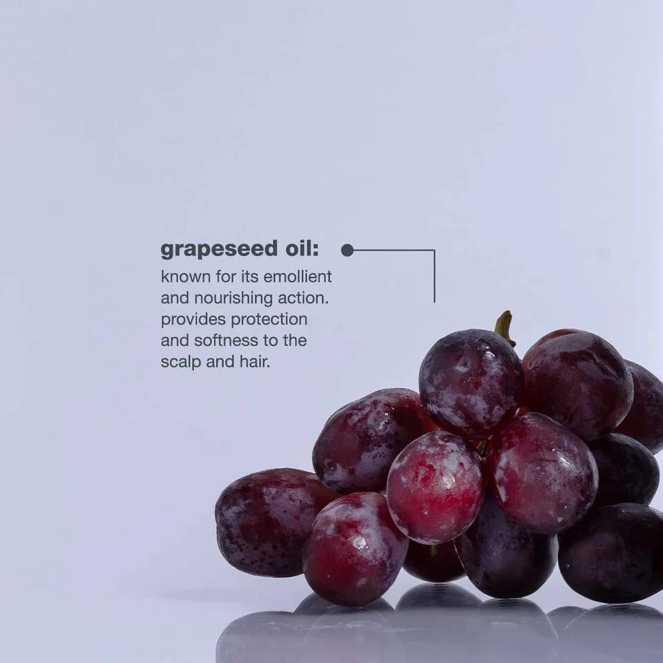 • Olej z hroznových semínek (Grapeseed Oil) — poskytuje výživu, ochranu a hebkost vlasům a pokožce hlavy.