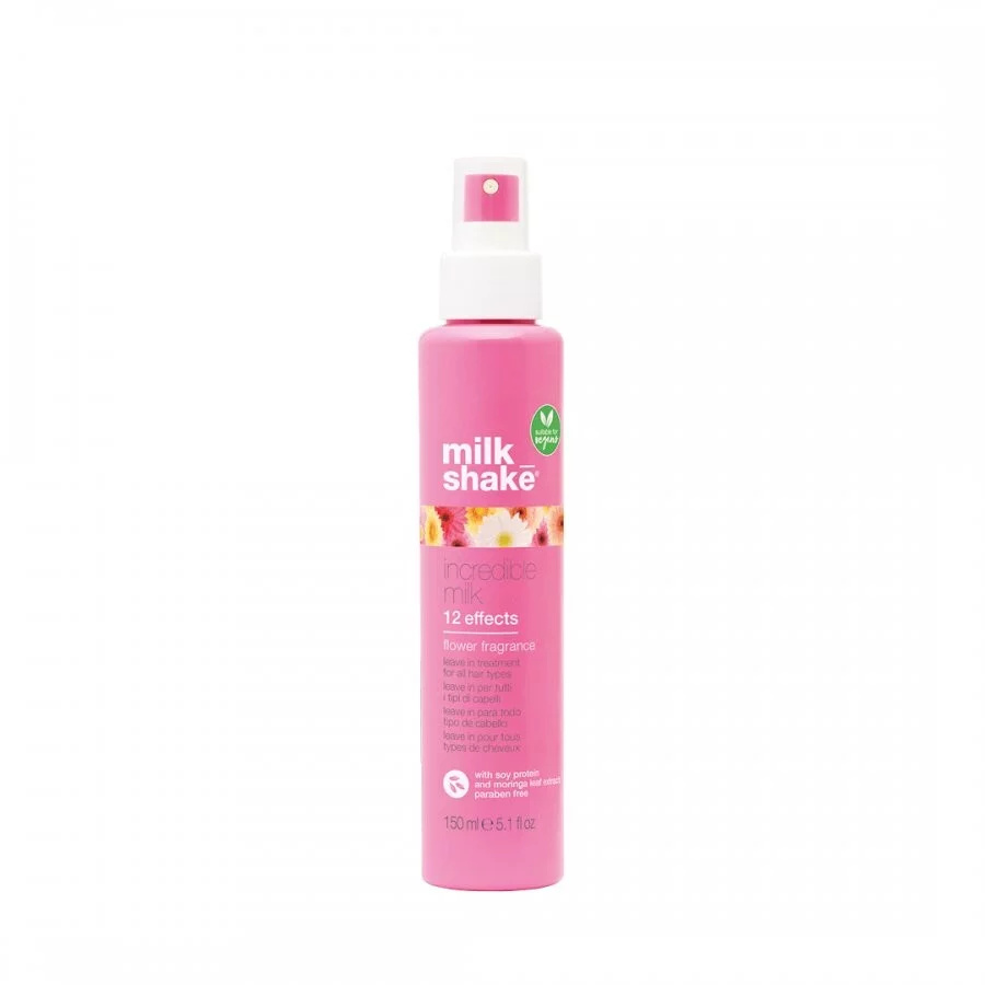 Milk_Shake Incredible Milk Flower Fragrance je intenzivní bezoplachová maska ve spreji pro všechny typy vlasů, která spojuje výživu, ochranu a zkrášlení v jednom kroku. Jde o „spray-on“ masku s vyživujícím a ochranným účinkem a 12 oficiálně definovanými benefity pro vlasy.
