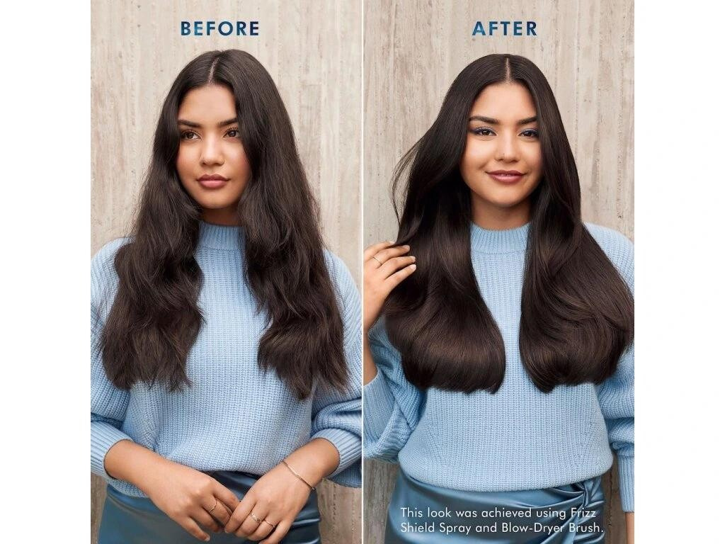 Termoaktivní, nezatěžující sprej, který pomáhá dlouhodobě chránit vlasy před krepacení a statickou elektřinou a zároveň je okamžitě zanechá hedvábně hladké a hebké. Cílí na nejčastější spouštěče krepatění – vlhkost, suchý vzduch, tření, znečištění i další vlivy prostředí – a vytváří na vlasech ochranný štít pro upravený vzhled na několik dní. Technologie HydroResist obalí jednotlivé prameny, podpoří styling a po aktivaci teplem posiluje odolnost vlasů vůči vlhkosti a poletování, aniž by je slepovala nebo zatěžovala.