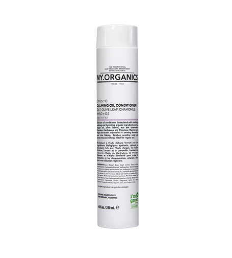 My.Organics Calming Oil Conditioner 250 ml je jemný kondicionér s uklidňujícím účinkem, ideální pro citlivou a podrážděnou pokožku hlavy. Obsahuje organické složky jako arganový olej, extrakt z olivových listů, oves a heřmánek, které hydratují a zklidňují pokožku. Díky přítomnosti Zanthalene, Piroctone Olamine a Alpha Bisabololu pomáhá při léčbě dermatitidy a olupování kůže.