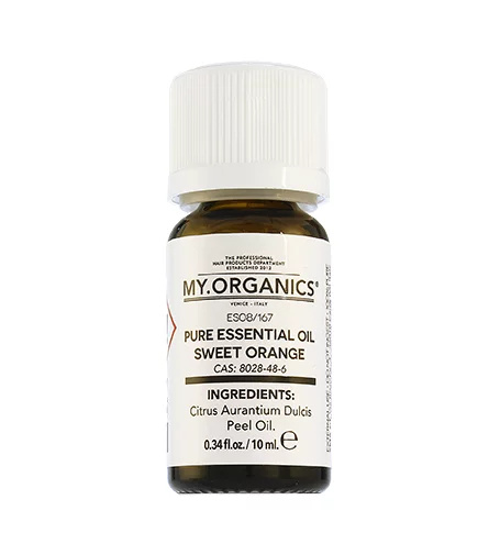 My.Organics Essential Oil Sweet Orange 10 ml je 100% čistý esenciální olej ze sladkého pomeranče (Citrus sinensis), získávaný lisováním za studena z kůry plodů . Je navržen pro použití v synergii s řadou My.Organics My.Scalp, umožňující vytvářet vlastní kombinace pro specifické výhody pro pokožku a vlasy, a zároveň šíří poutavé vůně pro okamžik smyslové pohody.