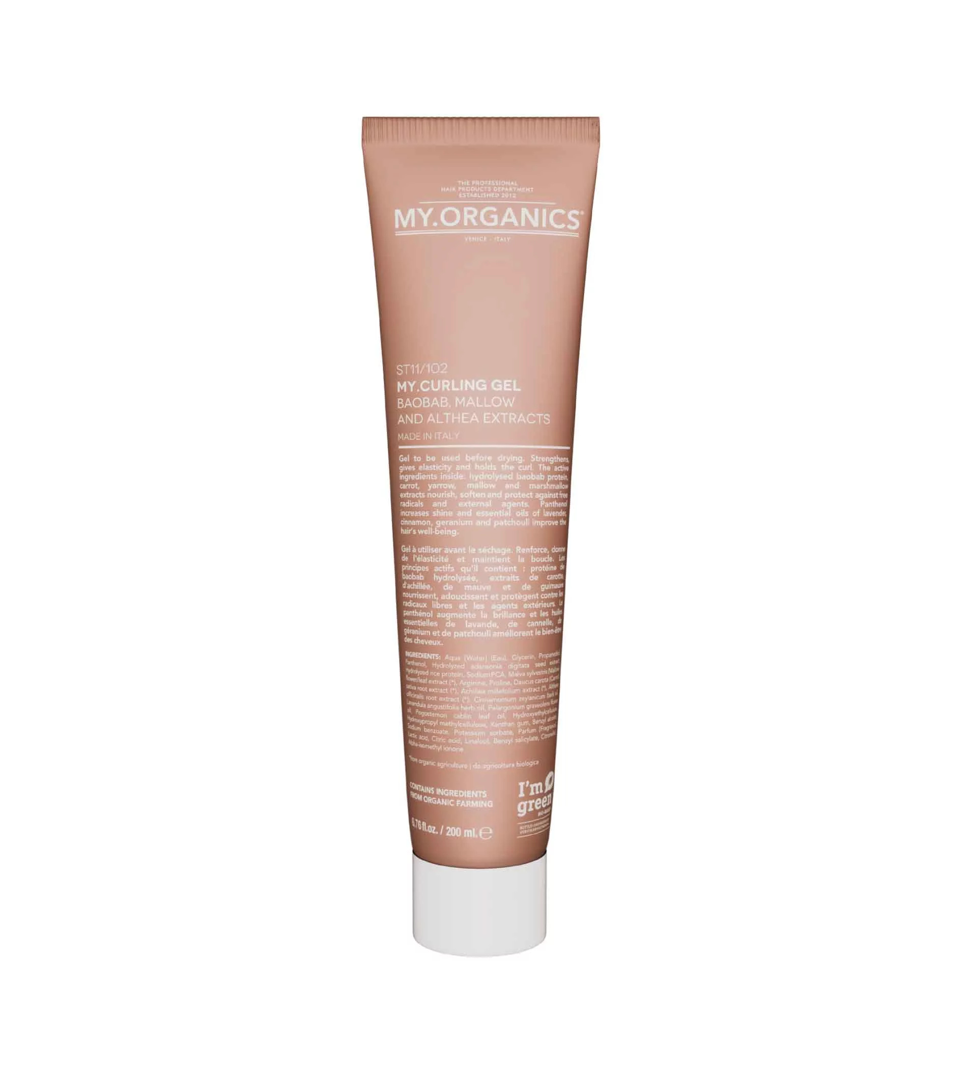My.Organics My.Curling Gel 200 ml je lehký gel určený k definici a posílení kudrlin. Obsahuje hydrolyzovaný protein z baobabu, výtažky z mrkve, řebříčku, slézu a blatouchu, které vyživují, zjemňují a chrání vlasy před volnými radikály a vnějšími vlivy. Panthenol zvyšuje lesk, zatímco esenciální oleje z levandule, skořice, geránia a pačuli zlepšují pohodu vlasů.