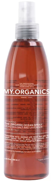 Texturizační sprej MY.ORGANICS The Organic Ocean Spray Dead Salt And Lavender s bohatým obsahem soli z Mrtvého moře, určený pro účesy s mokrým efektem. Dodává účesu rozměr, objem a definici, nezatěžuje vlasy.