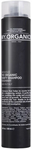 Produktová řada My.Organics The Organic Purify je mimořádně vhodná zejména pro ty, kdo trpí problémy s padáním vlasů. Účinkuje jemně, zklidňuje vlasovou pokožku, které vrací přirozenou rovnováhu, a je šetrná i k nejcitlivější kůži. Podpůrný šampon pro znovunastolení rovnováhy My.Organics The Organic Purify působí proti padání vlasů. Zajišťuje hloubkovou očistu a současně zklidňuje vlasovou pokožku a podporuje přirozený růst vlasů. Hydratuje a posiluje vlasy díky aktivním složkám obsaženým v esenciálních olejích levandule, rozmarýnu a eukalyptu.