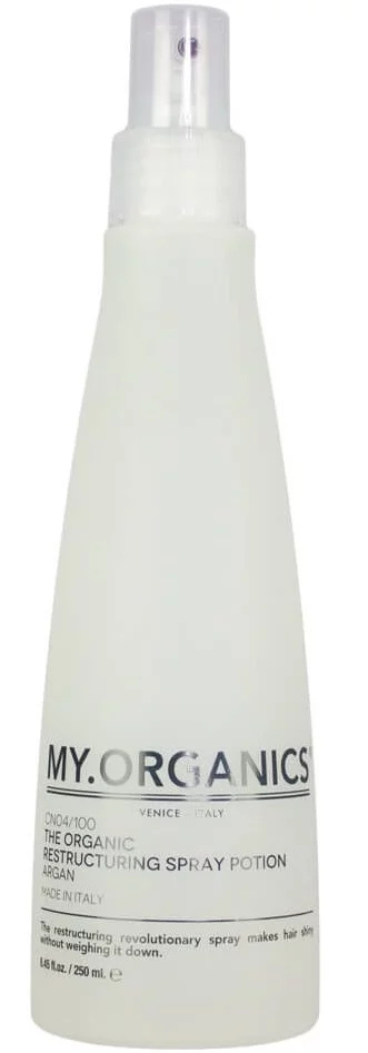 Stylingový sprej pro rekonstrukci vlasů MY.ORGANICS The Organic Restructuring Spray Potion Argan dodává brilantní lesk všem typům vlasů, aniž by je zatěžoval.