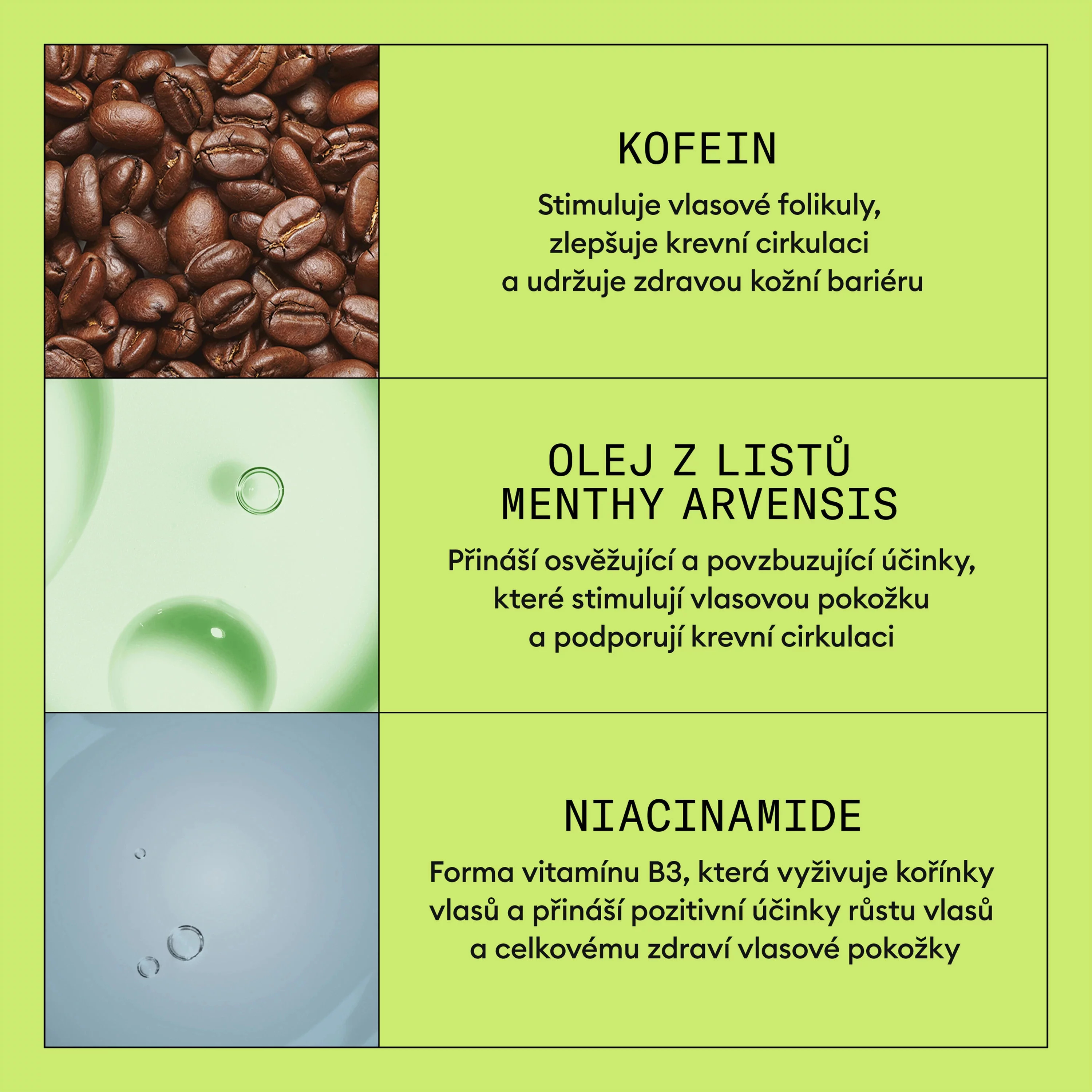 - Stimuluje vlasové folikuly