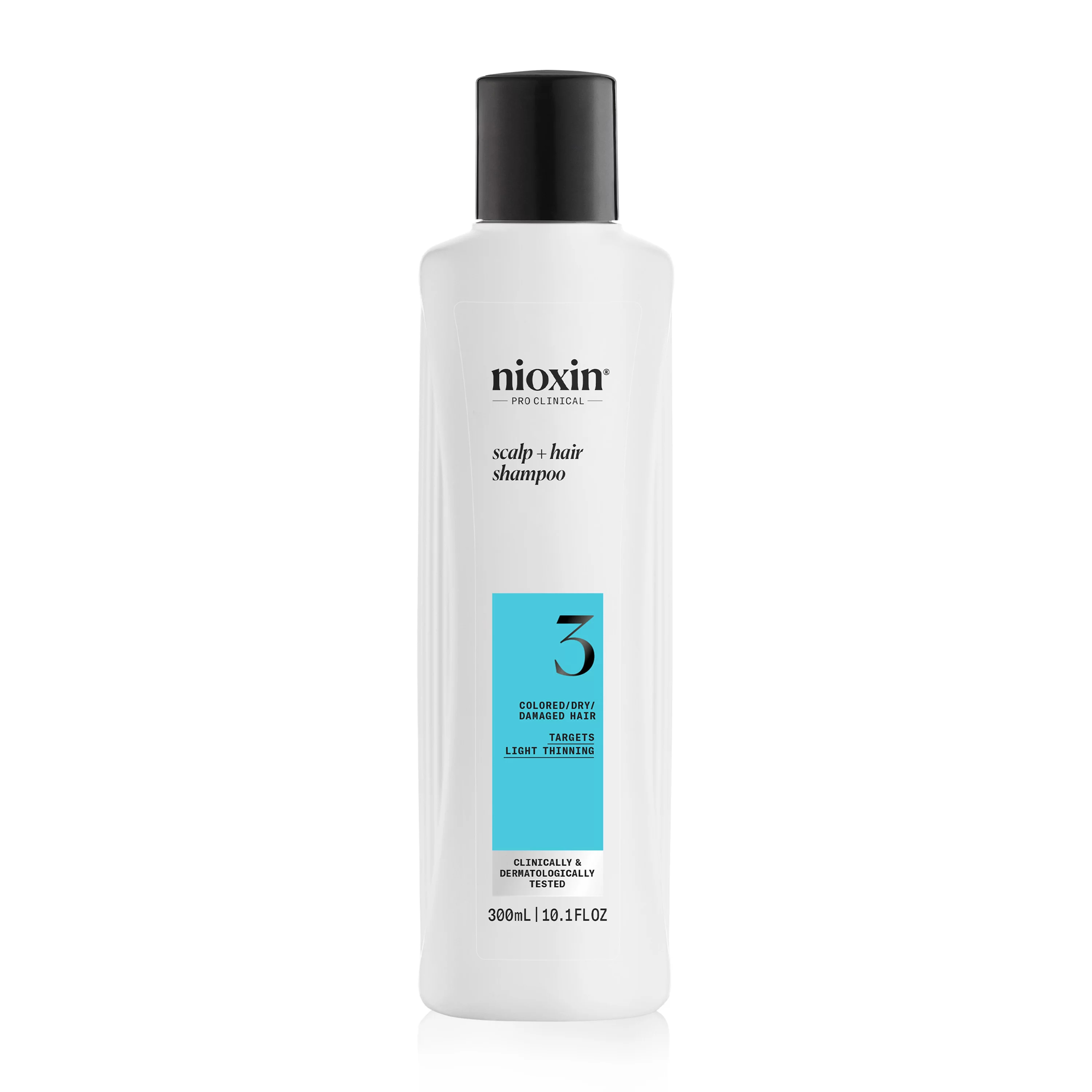 Šampon je součástí System 3, který je určen pro suché, barvené a chemicky ošetřené vlasy s mírným řídnutím. Součást 3-krokové péče System 3, který se má používat pravidelně a dlouhodobě pro maximální výsledek. Pokud jste v minulosti používali systémovou sadu 5 od Nioxin, tak System 3 ho nahrazuje.