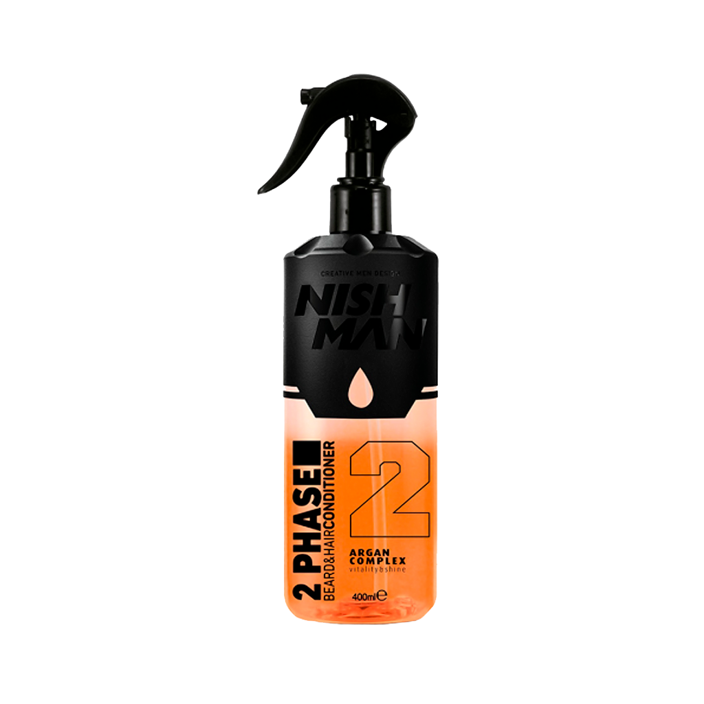 Kondicionér na vlasy a vousy Nishman 2Phase Argan Complex Hair & Beard Conditioner poskytuje intenzivní hydrataci, výživu a zjemnění bez zatížení. Dvoufázové složení s arganovým olejem posiluje vlasová i vousová vlákna, obnovuje jejich pružnost a dodává přirozený lesk a hebkost. Je ideální pro každodenní použití.