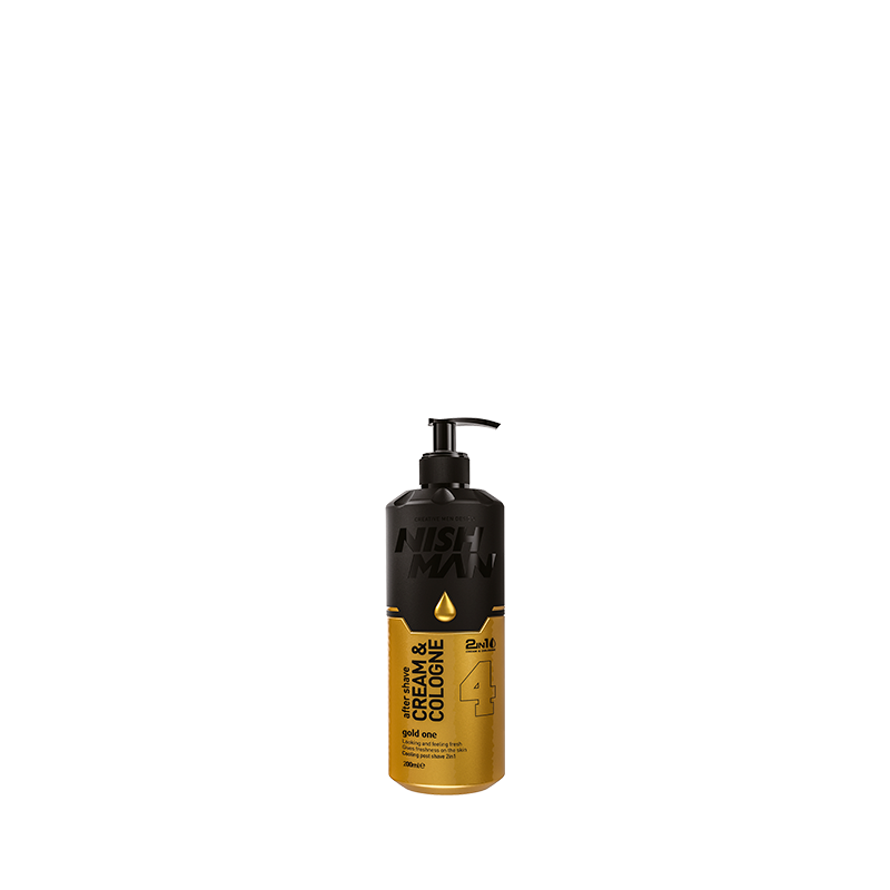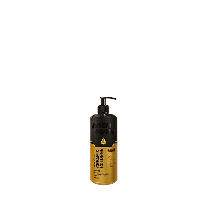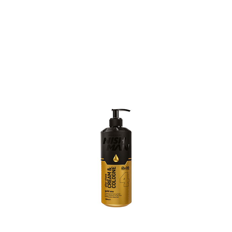 Hydratační krém–kolínská po holení Nishman 4 Gold One Million Aftershave Cream Cologne 2v1 spojuje zklidňující účinky krému a osvěžující svěžest kolínské. Po holení okamžitě hydratuje pokožku, zmírňuje podráždění a chrání ji před zarudnutím. Lehká textura se rychle vstřebává a nezanechává mastný film. Vůně inspirovaná parfémem One Million dodává pokožce energii a výrazný mužný charakter.