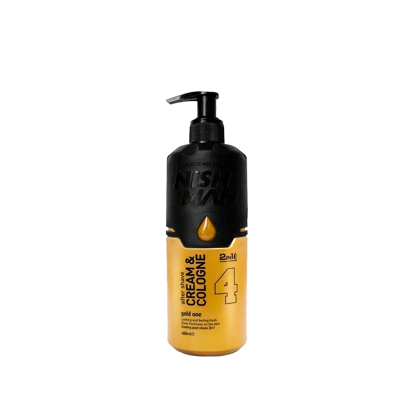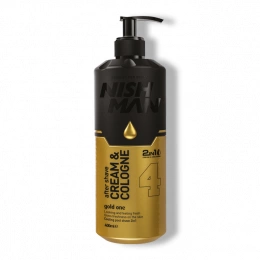 Hydratační krém–kolínská po holení Nishman 4 Gold One Million Aftershave Cream Cologne 2v1 spojuje osvěžující účinek kolínské s pečujícími vlastnostmi hydratačního krému. Po holení okamžitě zklidňuje pokožku, hydratuje ji a chrání před podrážděním či zarudnutím. Lehká konzistence se rychle vstřebává a nezanechává mastný film. Vůně inspirovaná parfémem One Million dodává svěžest, energii a výrazný mužný charakter.