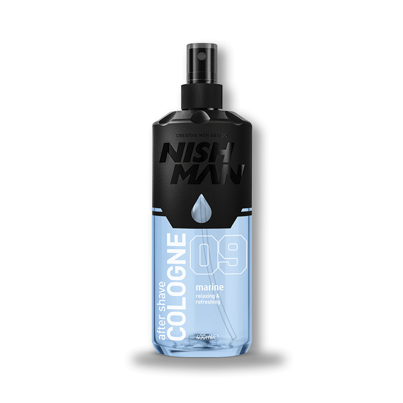NishMan After Shave Cologne No.9 Marine je osvěžující voda po holení s mořskou vůní, která okamžitě zklidňuje a dezinfikuje pokožku po holení. Zanechává příjemný chladivý pocit, dodává svěžest a zanechává dlouhotrvající mužnou vůni. Ideální pro každodenní použití v barbershopech i doma.