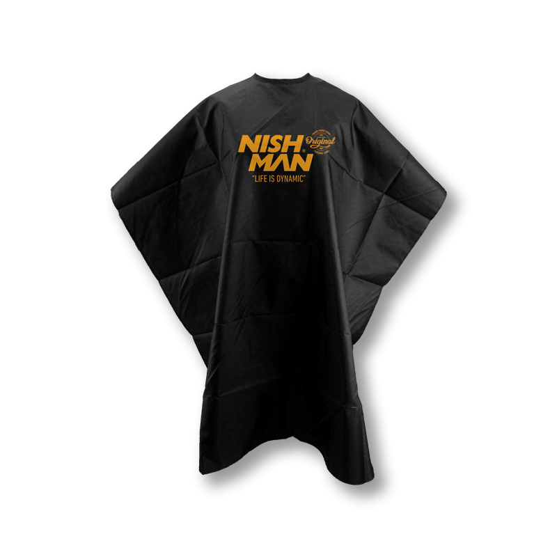 Kadeřnická pláštěnka na stříhání Nishman Barber Cape je navržena pro každodenní použití v barbershopech i kadeřnictví. Poskytuje spolehlivou ochranu oblečení zákazníka před vlasy, vodou a kosmetickými přípravky během stříhání, holení či stylingu. Je vyrobena z lehkého, odolného a voděodpudivého materiálu, který zajistí komfort i při delším sezení.