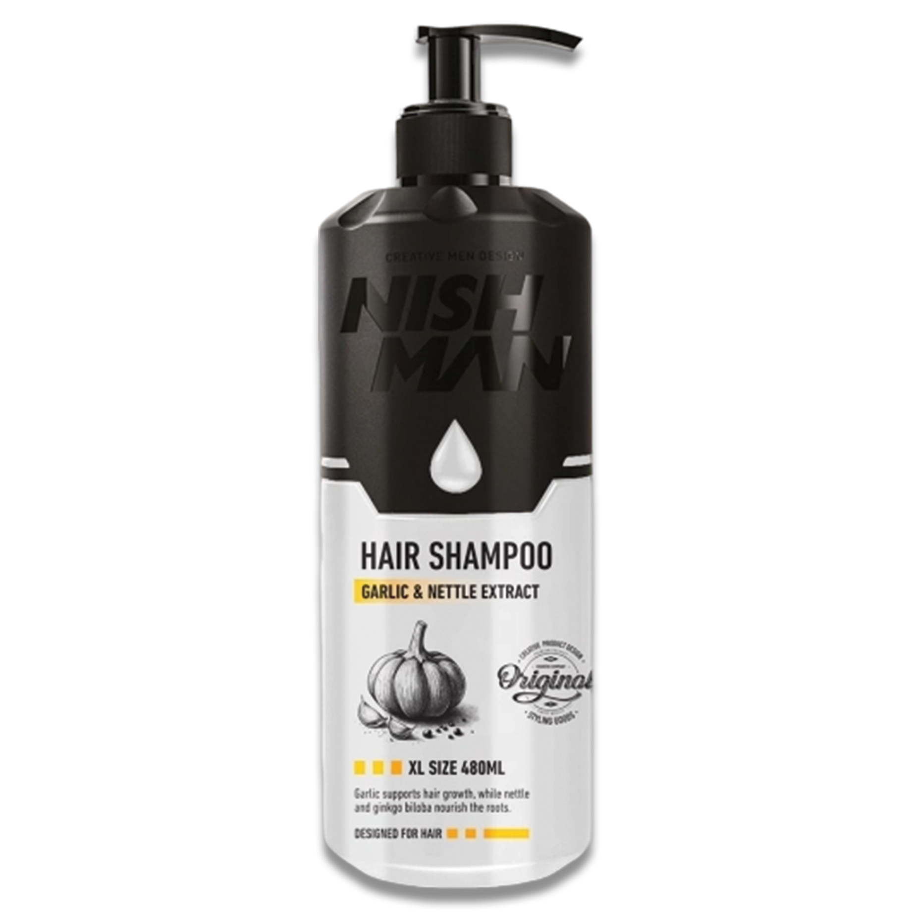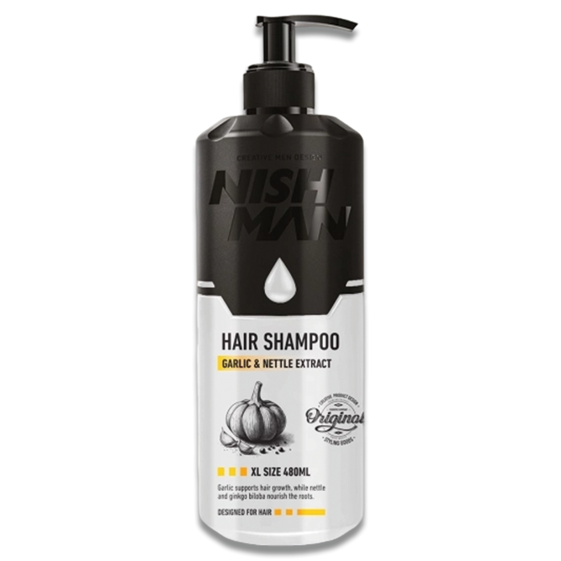 Šampon s česnekem a kopřivovým extraktem Nishman Garlic & Nettle Extract Shampoo posiluje vlasové kořínky, stimuluje růst vlasů a pomáhá předcházet jejich vypadávání. Zároveň šetrně čistí vlasy i pokožku hlavy, dodává vlasům lesk, objem a zdravý vzhled. Je ideální pro oslabené, řídnoucí a namáhané vlasy.