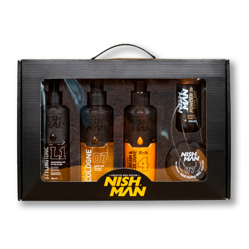 Dárková sada Nishman GiftBox Gold je kompletní balíček produktů pro péči o vlasy i pokožku, který potěší každého moderního muže. Obsahuje oblíbené přípravky Nishman určené pro dokonalý styling i péči po holení. Díky elegantnímu balení je ideální jako dárek pro různé příležitosti.