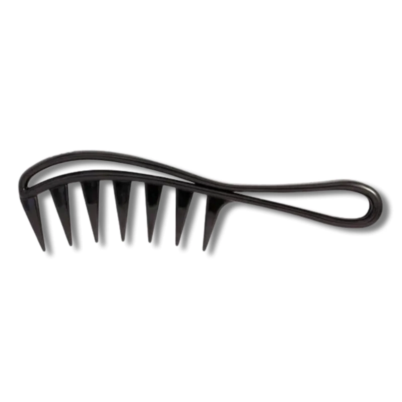 Hřeben pro husté a kudrnaté vlasy je profesionální texturizační hřeben určený pro práci s hustými, kudrnatými, neforemnými i objemnými vlasy. Díky široce rozloženým, hrubým zubům umožňuje snadné rozčesání bez tahání a lámání vlasů a vytváří přirozený efekt podobný rozčesávání prsty. Je vyroben z antistatického, tepelně odolného plastu, takže je ideální pro každodenní použití v salonu i doma.