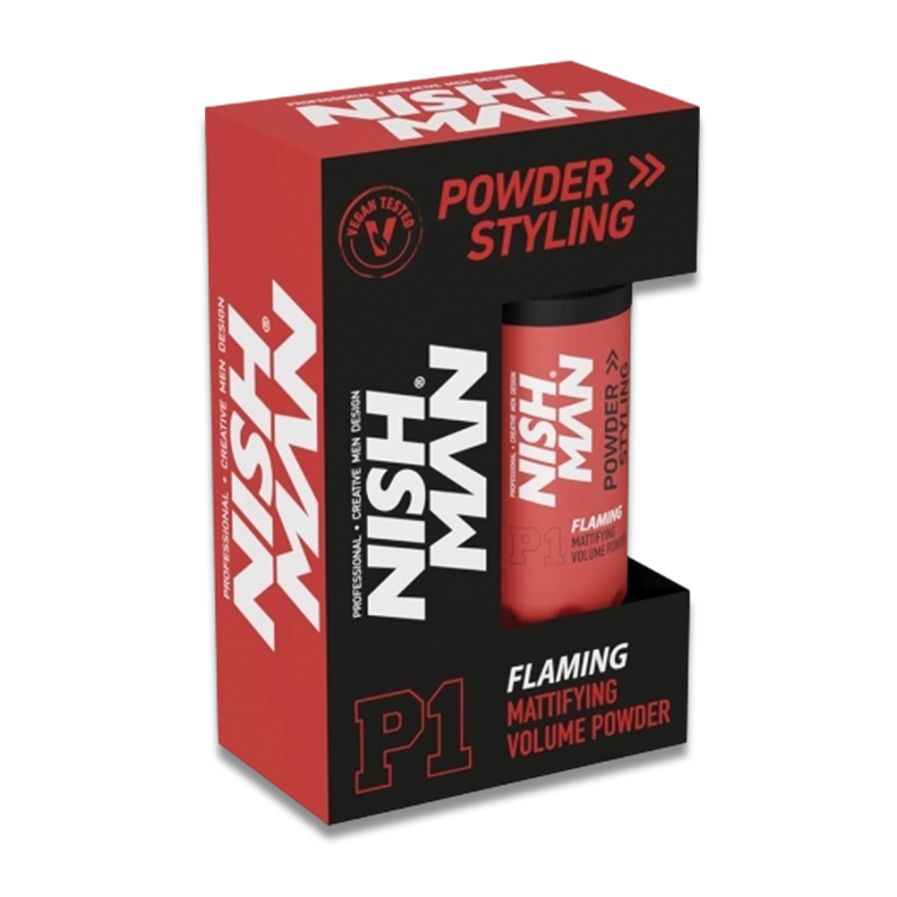 Stylingový pudr na vlasy Nishman Hair Styling Powder P1 Flaming dodává vlasům okamžitý objem, texturu a matný vzhled bez zatížení. Poskytuje silnou fixaci, která udrží účes na místě po celý den, a zároveň zanechává vlasy pružné a snadno přetvarovatelné. Má výraznou a energizující vůni, která dodá vlasům svěžest.