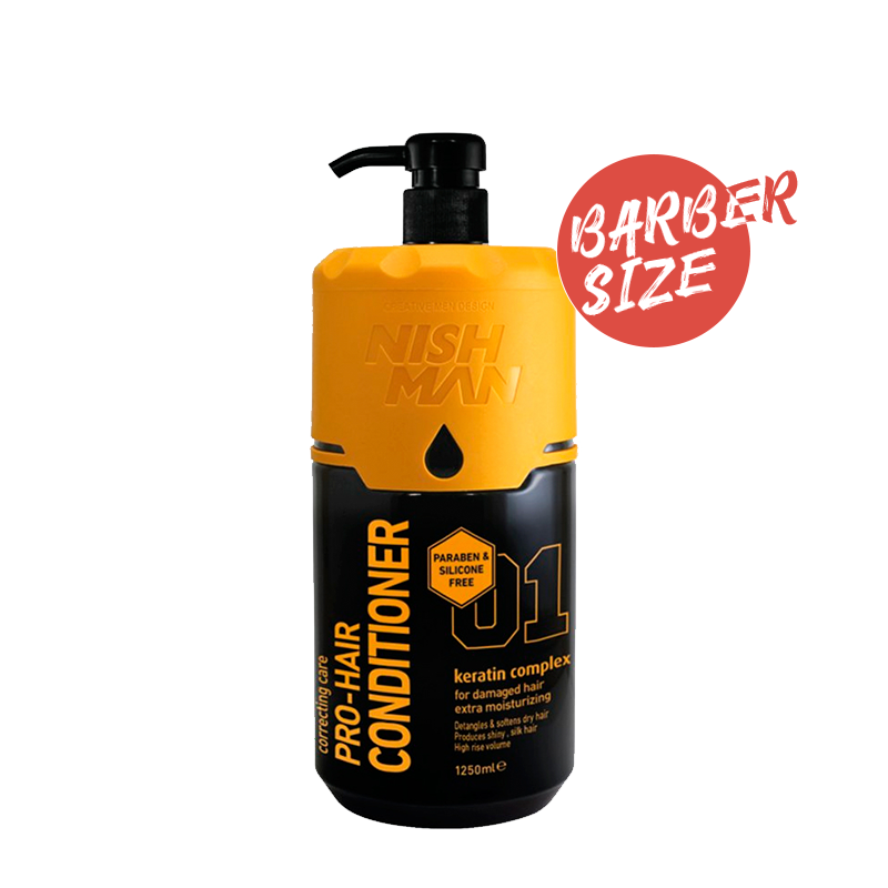 Kondicionér na vlasy Nishman Pro Paraben Free Hair Conditioner bez obsahu parabenů poskytuje intenzivní hydrataci, výživu a regeneraci vlasů. Je šetrný k vlasům i pokožce hlavy, zanechává vlasy hebké, lesklé a snadno rozčesatelné. Díky jemnému složení je vhodný pro každodenní použití a všechny typy vlasů, včetně barvených či poškozených.