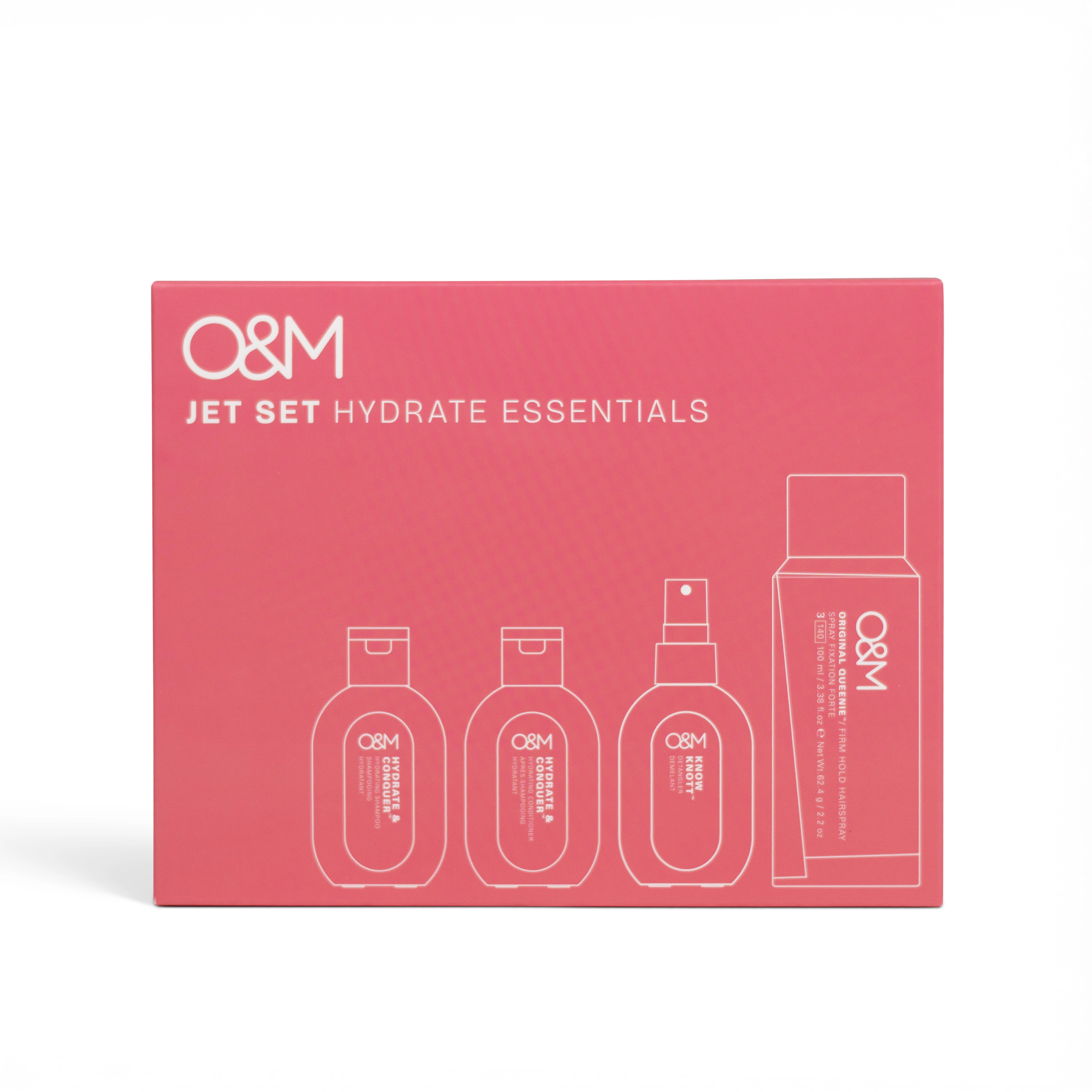 O&M – Promo Travel Pack Hydrate 2025 je cestovní dárková sada určená pro hloubkovou hydrataci vlasů. Obsahuje miniatury klíčových přípravků značky O&M: hydratační šampon 50 ml, kondicionér 50 ml, bezoplachový sprej 50 ml a lak na vlasy 100 ml.
