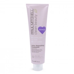 Paul Mitchell Clean Beauty Color Depositing Treatment Amethyst je tónovací péče, která oživuje a zvýrazňuje fialové odstíny vlasů. Obsahuje bio arganový olej a extrakt z aloe vera, které poskytují intenzivní hydrataci a výživu, čímž zanechávají vlasy hebké, lesklé a zdravé. Tónovací složky dodávají vlasům krásný, živý fialový nádech, který zůstává intenzivní a zářivý. Tento ekologický produkt je vyroben z přírodních ingrediencí a balen v recyklovatelném obalu, ideální pro péči o vlasy i životní prostředí.