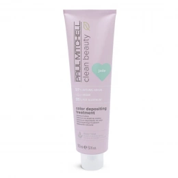 Paul Mitchell Clean Beauty Color Depositing Treatment Jade je tónovací péče, která zvýrazňuje a osvěžuje zelené odstíny vlasů. Obsahuje bio arganový olej a extrakt z aloe vera, které vlasům poskytují intenzivní hydrataci, výživu a ochranu proti vysoušení. Tónovací složky dodávají vlasům živé zelené tóny, zatímco vlasy zůstávají hebké, lesklé a zdravě vypadající. Produkt je ekologicky šetrný, vyrobený z přírodních surovin a balený v recyklovatelném obalu.