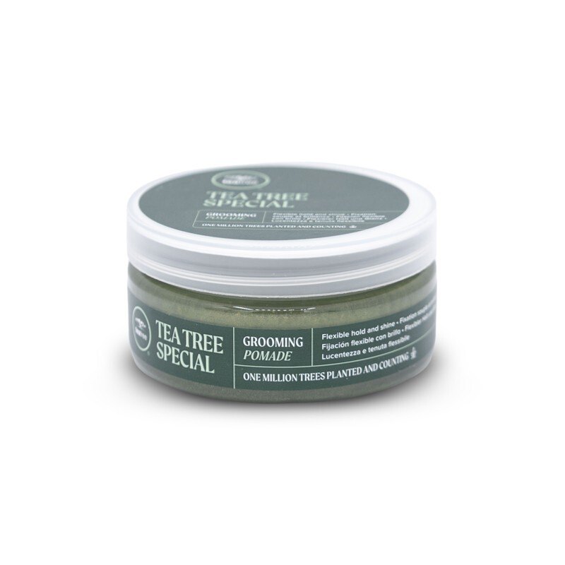 Tea Tree Grooming Pomade nabízí pružnou fixaci díky rostlinným kondicionérům a bylinným pečujícím složkám. Vlasy jsou definované, hebké na dotek a jemně lesklé. Skvěle se hodí i pro vlnité a kudrnaté vlasy, které pomáhá zjemnit a usměrnit bez zatížení.