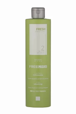 Freelimix maska na vlasy osvěžující - FRESH. Osvěžující maska. Díky směsi exotického ovoce a květů kaktusů intenzivně okysličuje, podporuje elasticitu, čistí, hydratuje a zvlhčuje pokožku hlavy, čímž poskytuje vlasové pokožce příjemný pocit svěžesti.
