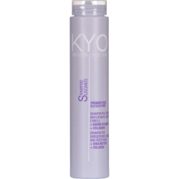 KYO šampon uhlazující bez parabenu. Obohacený o kolagen a bambucké máslo, SMOOTHSYSTEM šampon jemně čistí, dodává lesk a uklidňuje vlasovou strukturu. Vyživuje dodáním jemnosti, chrání před krepatostí a to bez ztěžknutí vlasů a dodává uhlazující efekt. Je bez SLS/SLES a bez parabenu.