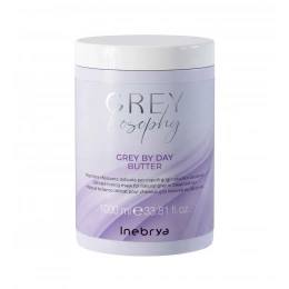 Inebrya Grey By Day Butter 1000 ml je jemná tónovací maska navržená speciálně pro přírodní šedé a odbarvené platinově blond vlasy. Tato maska je obohacena o avokádový olej a bambucké máslo, které poskytují intenzivní hydrataci, výživu a lesk. Díky svému složení pomáhá eliminovat nežádoucí žluté tóny, zvyšuje lesk a usnadňuje rozčesávání vlasů. Produkt je 100% veganský a neobsahuje silikony.