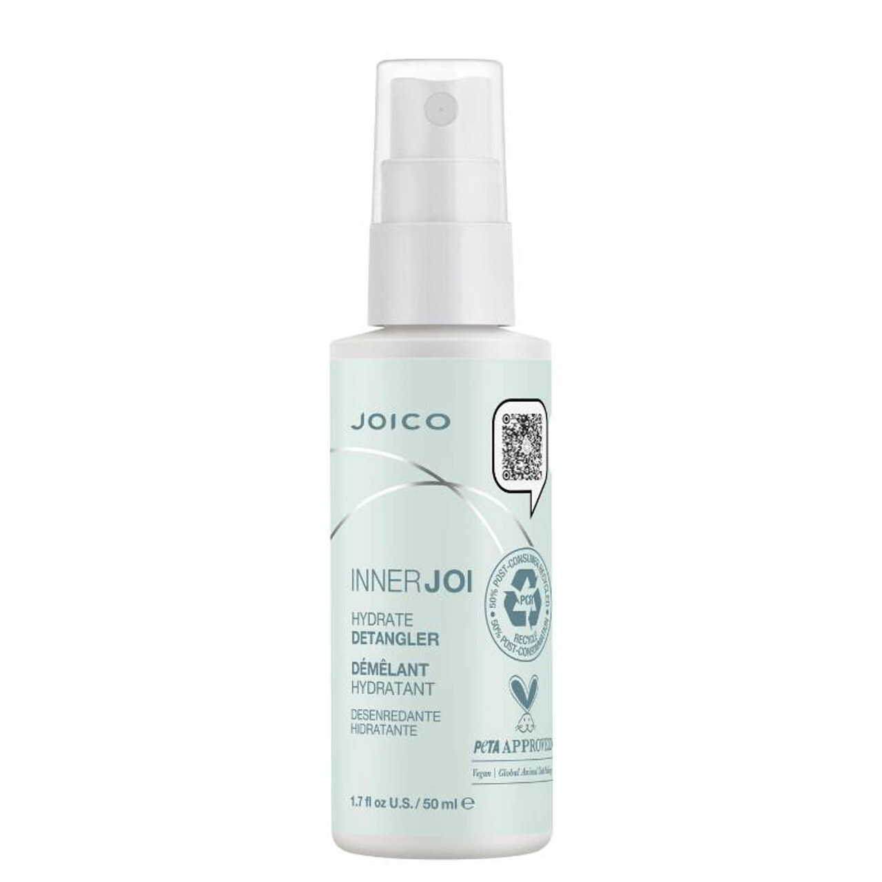 InnerJoi Hydrate Detangler je lehký sprejový přípravek určený pro hydrataci a snadné rozčesávání suchých či zacuchaných vlasů. Je vyrobený z 97 % přírodních složek včetně výtažku z jablek, aloe, vegan proteinů z hrachu a olivového esteru. Poskytuje vlhkost, uhlazuje povrch vlasů, redukuje krepatění a zanechává účes hebký a lesklý.