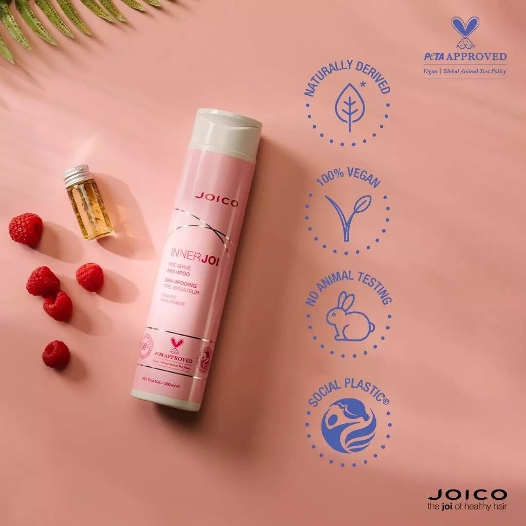 Joico InnerJoi Preserve Shampoo je jemný šampon vyvinutý speciálně pro ochranu barvy a zdraví vlasů. Jeho složení obsahuje 90 % přírodních složek a je obohaceno o extrakt z červené řepy a olej z malinových semen, které pomáhají chránit barvu před vyblednutím a zároveň vlasy vyživují. Tento šampon je vhodný pro všechny typy vlasů, včetně těch barvených, a je šetrný k pokožce hlavy. Neobsahuje sulfáty SLS/SLES, parabeny, ftaláty ani silikony, což z něj činí ideální volbu pro ty, kteří preferují šetrnou a ekologickou péči o vlasy.
