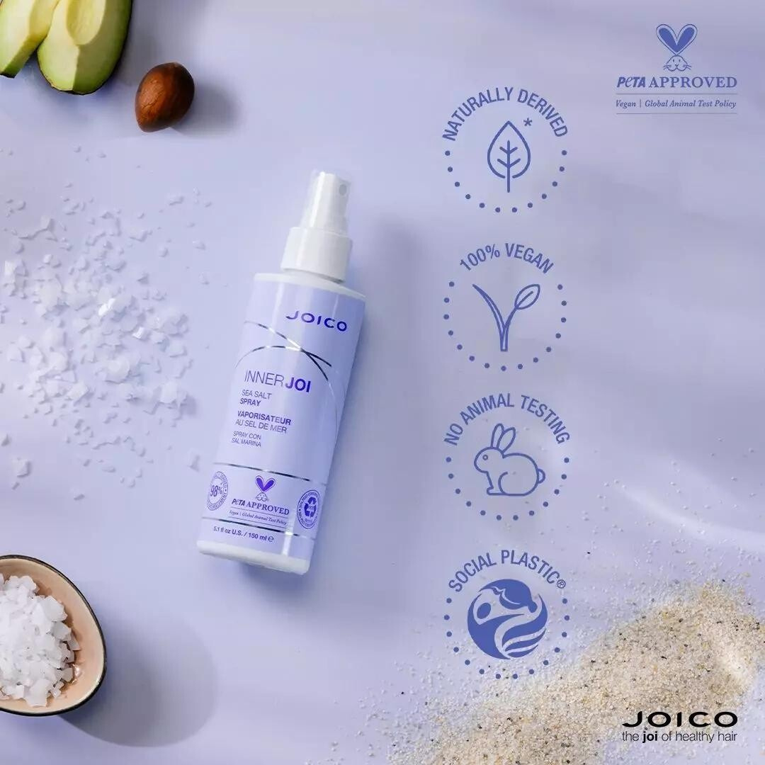 InnerJoi Sea Salt Spray je lehký stylingový sprej s mořskou solí, navržený pro vytvoření přirozené „beach waves“ textury, objemu a jemného držení bez zatížení vlasů. Přináší živý a vzdušný vzhled vlasům s přidanou hydratací díky pečujícím složkám zdravého původu.