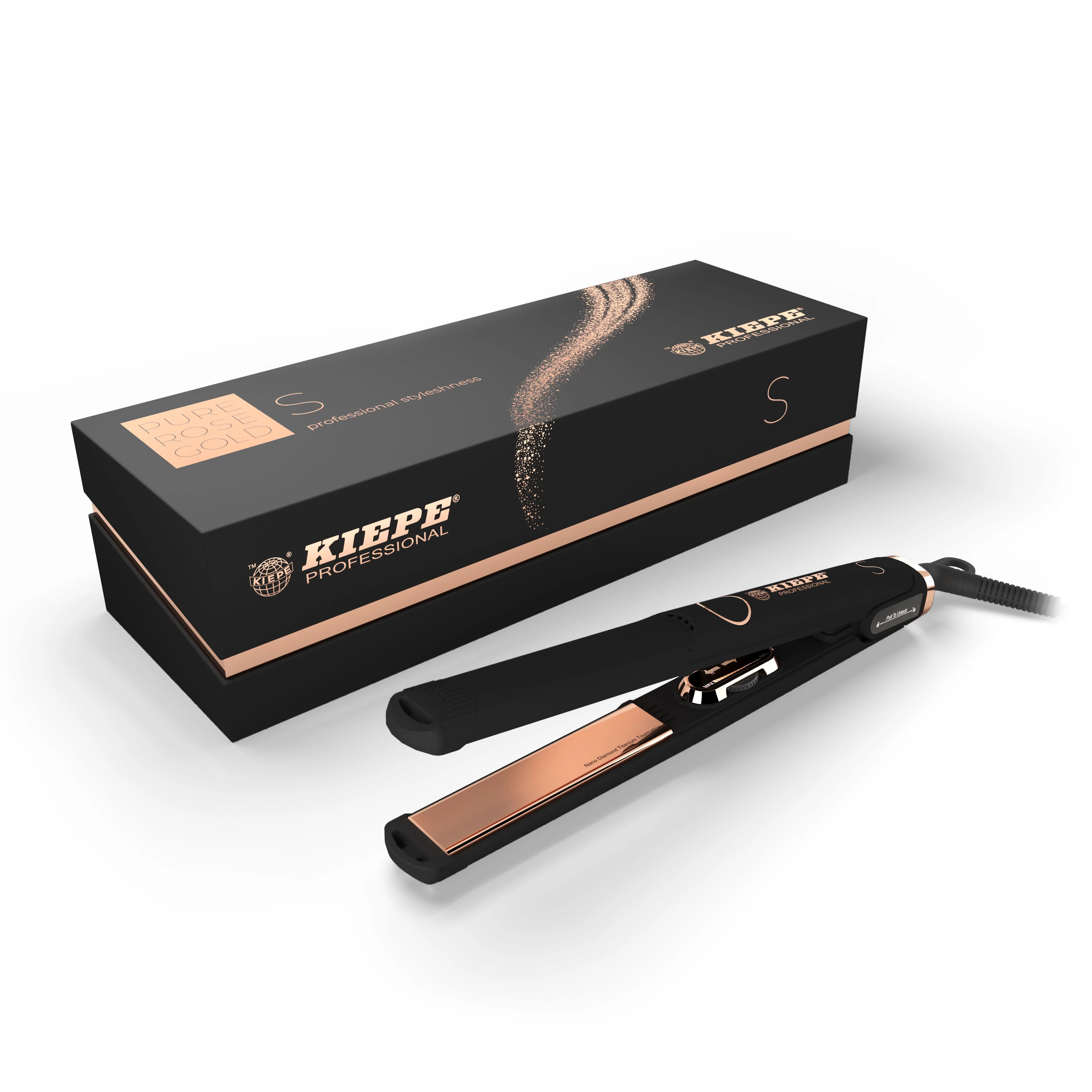KIEPE PURE ROSE GOLD - S 22 mm je profesionální digitální žehlička na vlasy s inovativní technologií Flex-Q a povrchovou úpravou nano- titan destiček. Novými funkcemi. Pohyblivé desky pro snadné vytvoření perfektních vln a objemu vašich vlasů nebo na dokonalé uhlazení vlasů. Na tepelné desky je použit nano-titanový povrch který zaručuje maximální styling a antistatický efekt. Nová digitální technologie Digital-HC pro lepší kontrolu a nastavení teploty. V připadě, že zařízení není užíváno po dobu 30 minut, žehlička se sama automaticky vypne a vstoupí do režimu spánku. Velikost destiček 22x95 mm.