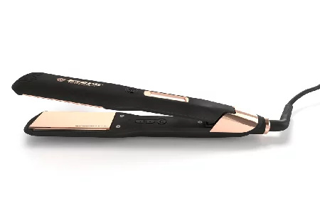 Profesionální digitální žehlička na vlasy s inovativní technologií Flex-Q a povrchovou úpravou nano- titan destiček. Novými funkcemi. Pohyblivé desky pro snadné vytvoření perfektních vln a objemu vašich vlasů nebo na dokonalé uhlazení vlasů. Na tepelné desky je použit nano-titanový povrch který zaručuje maximální styling a antistatický efekt. Nová digitální technologie Digital-HC pro lepší kontrolu a nastavení teploty. V případě, že zařízení není užíváno po dobu 30 minut, žehlička se sama automaticky vypne a vstoupí do režimu spánku.