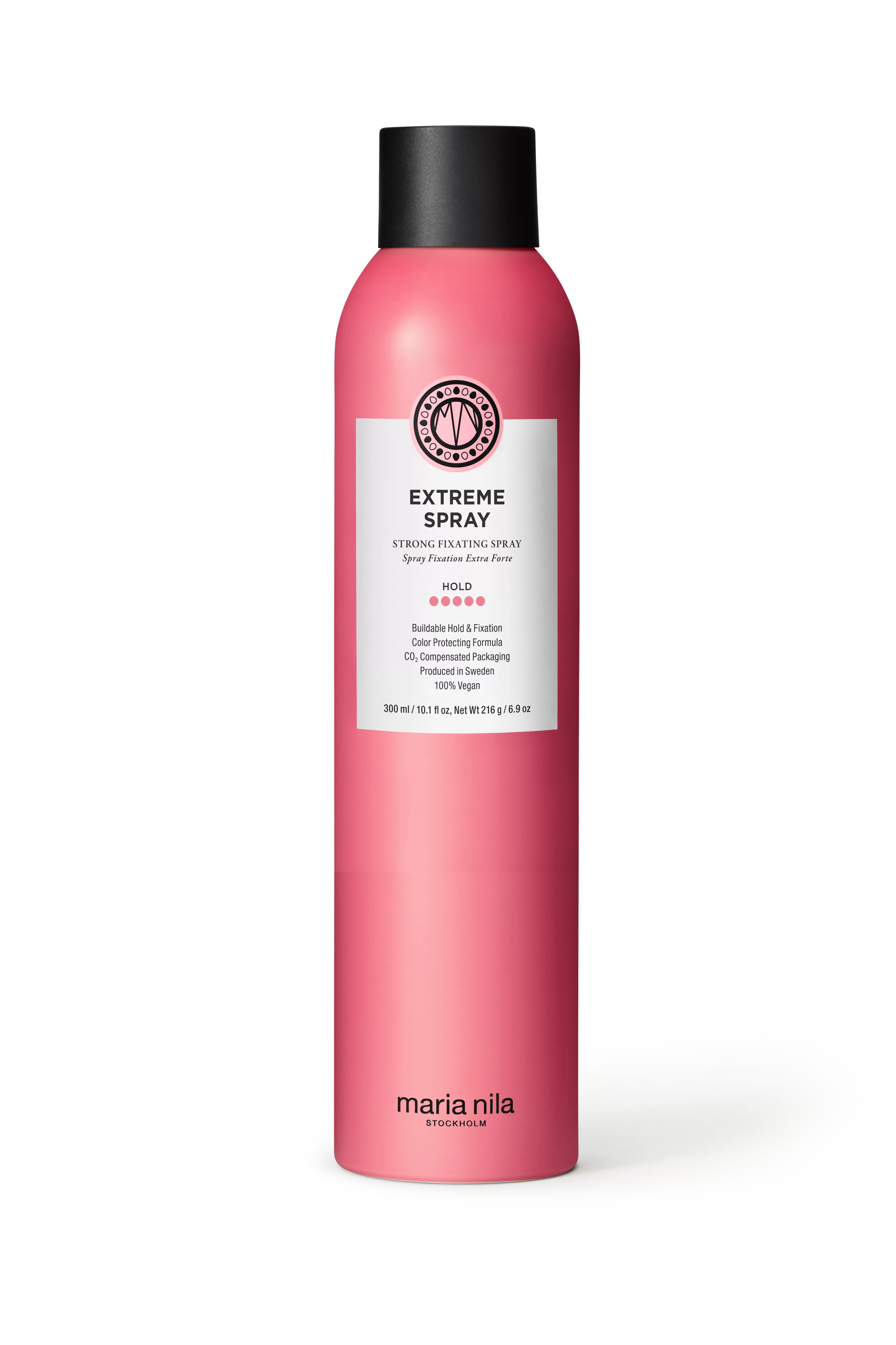 MARIA NILA EXTREME SPRAY je jemný lak na vlasy s extra silnou fixací. Komplex Colour Guard chrání vlasy před UV zářením a volnými radikály a zajišťuje déle trvající zářivou barvu. Síla fixace: 5 z 5