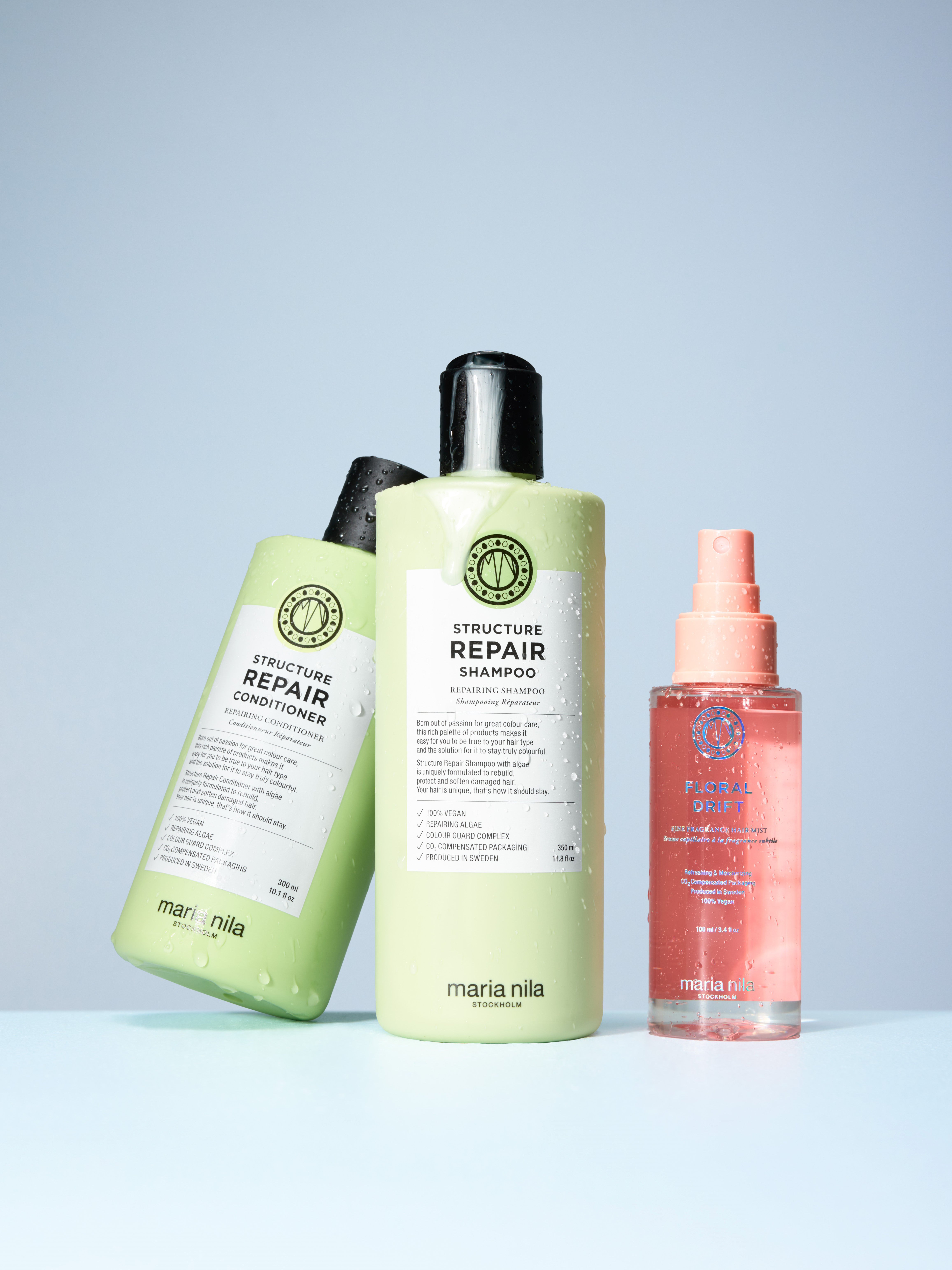 Maria Nila Holiday Box Structure Repair 2025 je exkluzivní dárková sada navržená pro posílení a regeneraci poškozených nebo chemicky ošetřených vlasů. Obsahuje plné balení šamponu a kondicionéru z řady Structure Repair a navíc nový vlasový mist Floral Drift, vše v limitovaném dárkovém balení.