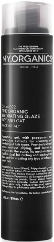 Hydratační gel MY.ORGANICS The Organic Hydrating Glaze Soy And Oat na bázi sóji a ovsa, obohacený o rostlinné výtažky z máty peprné a eukalyptu, ideální na úpravu a modelování všech typů vlasů. Dodává vlasům objem a zářivost, vlasy nevysouší a nezanechává zbytky na vlasové pokožce. Jeho fixační účinky jsou ideální pro zkadeření dlouhých vlasů nebo pro vytvoření vlnitého vzhledu. U silných vlasů vytváří jakýkoliv typ efektu.