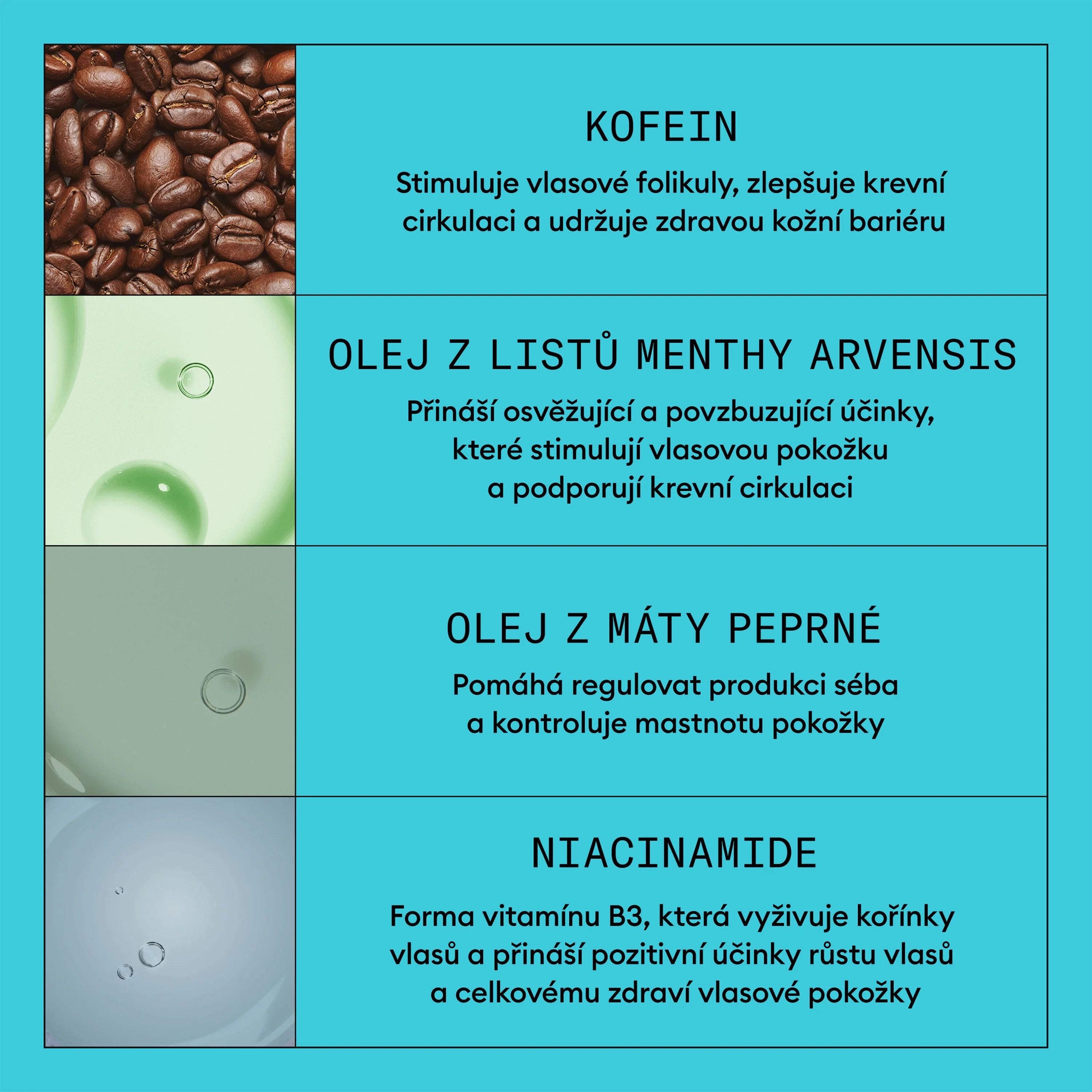 - Stimuluje vlasové folikuly