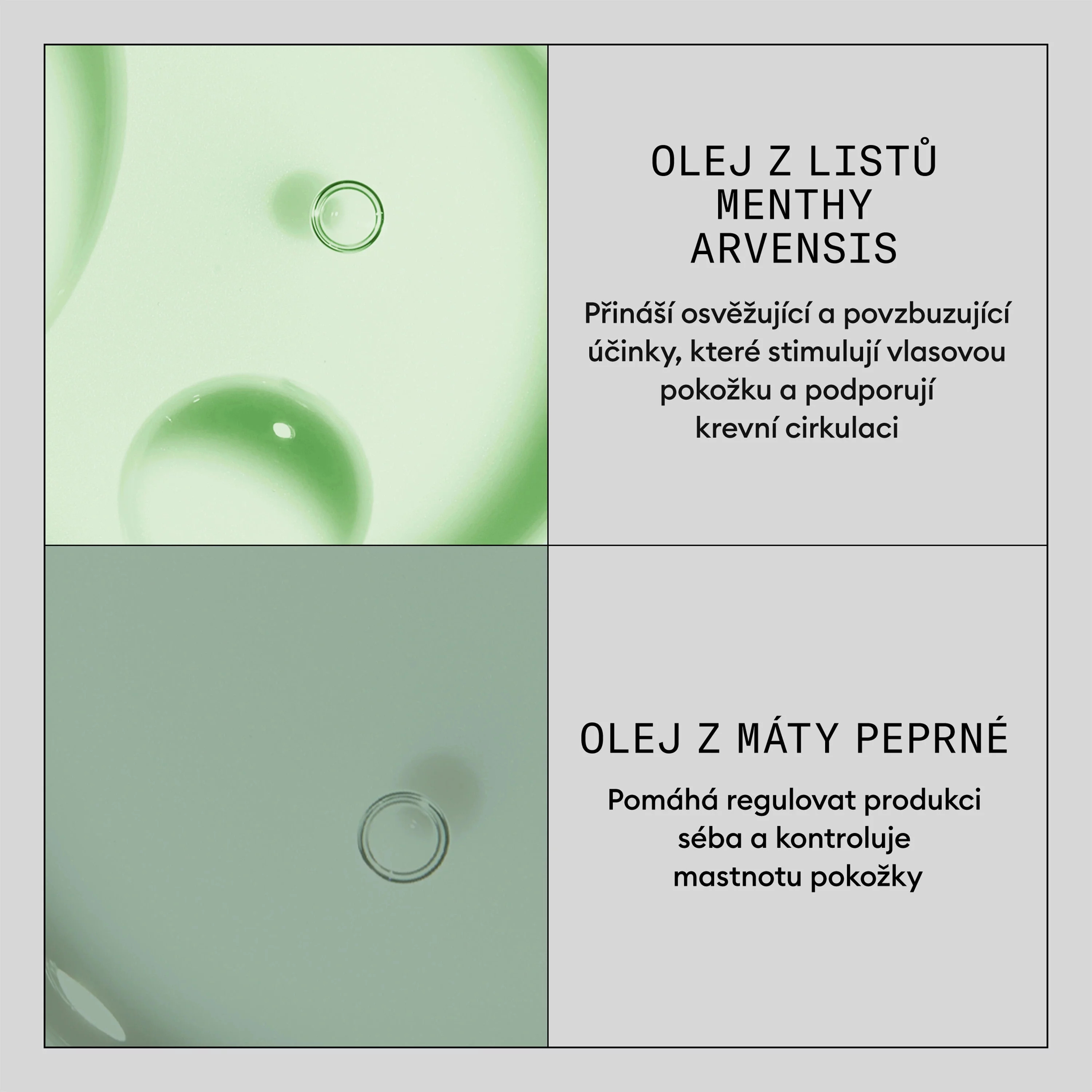 - Osvěžuje a oživuje vlasovou pokožku
