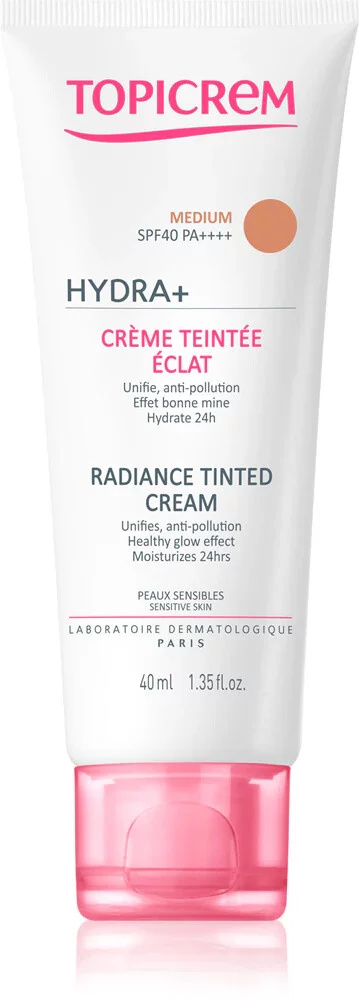 Topicrem Radiance Tónovaný krém Medium je ideální pro pleť, která potřebuje střední krytí a přirozené sjednocení. Tento krém má středně hutnou texturu, která dokonale pokryje nedokonalosti, sjednotí tón pleti a poskytne jí svěží, zářivý vzhled. Je obohacen o hydratační složky, které pleť vyživují a chrání ji před dehydratací. Je vhodný pro všechny typy pleti, včetně citlivé. Pokožka je po aplikaci vyhlazená, jemná a přirozeně rozjasněná, s dlouhotrvajícím účinkem.