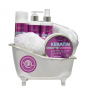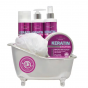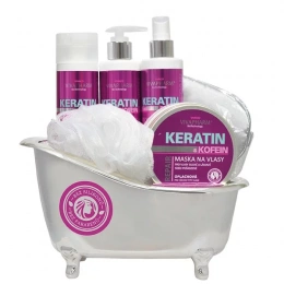 Krásné dárkové balení vlasové kosmetiky s keratinem a kofeinem pro péči o všechny typy vlasů, především poškozené, oslabené a vypadávající v dekorativní vaničce.
