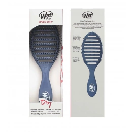 Wet Brush Trend Color Speed Dry Elemental Blue je moderní kartáč navržený pro rychlé a šetrné vysoušení vlasů. Díky ventilačnímu designu umožňuje lepší cirkulaci vzduchu, což zrychluje proces sušení. Je vybaven jemnými, flexibilními štětinami, které snadno procházejí vlasy, minimalizují lámání a zamezují zacuchání, což ocení zejména majitelky hustých nebo kudrnatých vlasů.