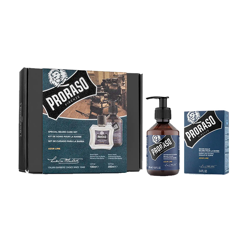 Dárková sada Proraso Azur Lime je ideální volbou pro každodenní péči o vousy i pokožku pod nimi. Obsahuje balzám na vousy a šampon na vousy z řady Azur Lime. Šampon šetrně čistí vousy, odstraňuje nečistoty a zanechává je hebké a zdravě vypadající. Balzám na vousy zmírňuje svědění v prvních týdnech růstu, hydratuje a zjemňuje vousy i pokožku pod nimi. Svěží citrusová vůně s tóny limetky, máty a jalovce dodává energii a pocit čistoty po celý den.